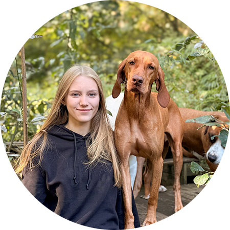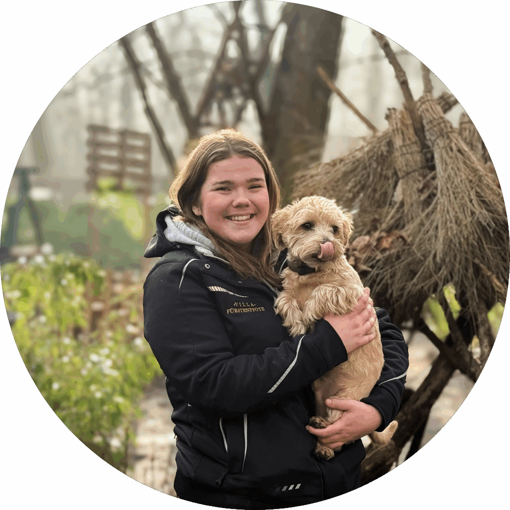Lea lernte die Villa als Kundin kennen und war so begeistert von unserem Konzept, dass sie sich für ein Sichtungspraktikum in der Villa Fürstenpfote bewarb. In dieser Zeit überzeugte sie nicht nur unser Team, sondern auch jeden Gast von ihrem Traum. Im August 2023 startete Lea ihre Ausbildung als Tierpflegerin bei uns. Durch ihr eigenes kleines Tierreich, welches sie von klein auf pflegt, bringt sie auch eine große Menge an Erfahrung mit – von Pferd bis Meerschwein ist alles dabei. Egal ob bellend oder schnurrend, alle Gäste lieben sie.