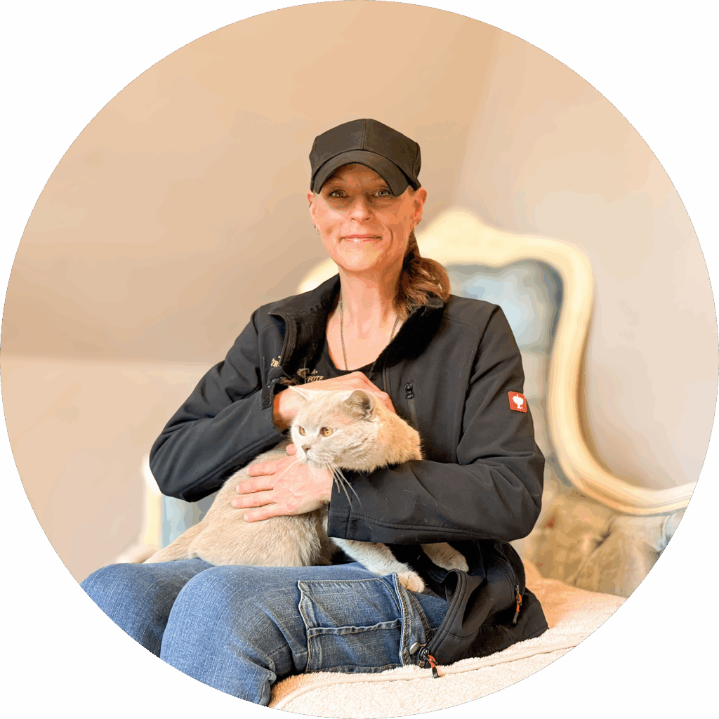 Draußen ist Eva unsere absolute Powermaschine: Mit einem feinen Blick fürs Detail kümmert sie sich nicht nur um unsere Außenanlagen, sondern behält in allen Bereichen der Villa den Überblick und sorgt für Ordnung. Dank ihr wird sonntags umgekrempelt – und montags strahlt die Villa, als wäre nie ein Laubblatt gefallen. Wir sind dankbar, Eva in unserem Team zu haben – als zuverlässige Unterstützung, als Herz für die Samtpfoten und als gute Seele, die unsere Villa jede Woche ein Stückchen schöner macht.